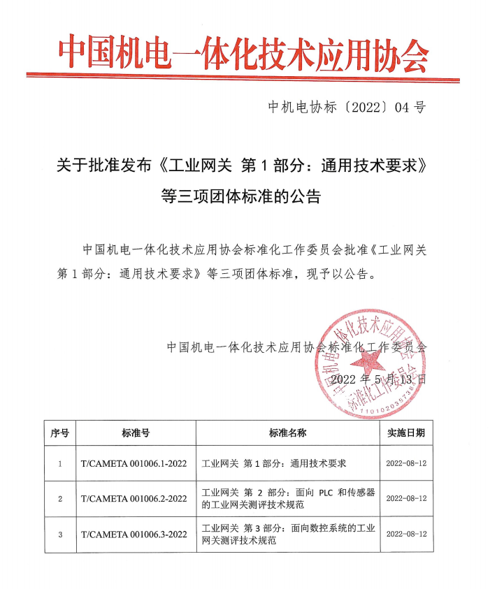 2022年5月13日,PA真人官网智通核心参编的工业网关标准,已正式顺利获得审批!将于2022年8月12日正式实施!